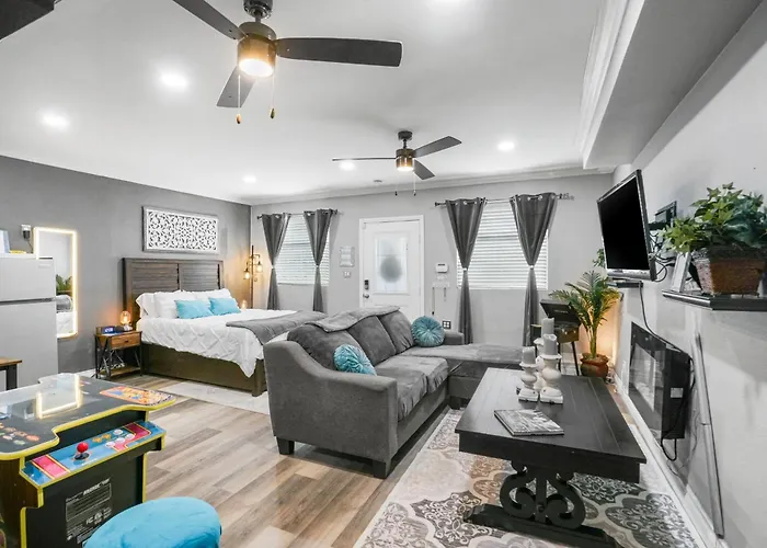 46m²のLuxury Cozy Studio With Firepit ビスタはシボド・パークから車で10分で、ブリーズ・ヒル・パークから2.3キロメートル離れた所の場所にあります。 ビジネスやレジャーのお客様のニーズに合わせて、Wi-Fiを提供しています。